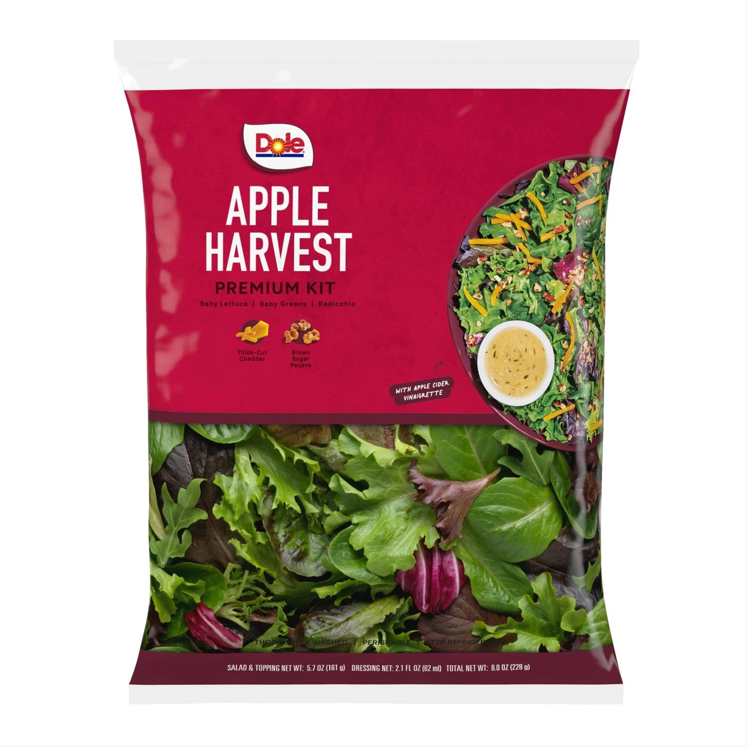 BABY LETTUCES, BABY GREENS, RADICCHIO, BROWN-SUGAR PECANS, CHEDDAR CHEESE WITH SWEET & TANGY APPLE CIDER VINAIGRETTE DRESSING. 6/8 OZ.